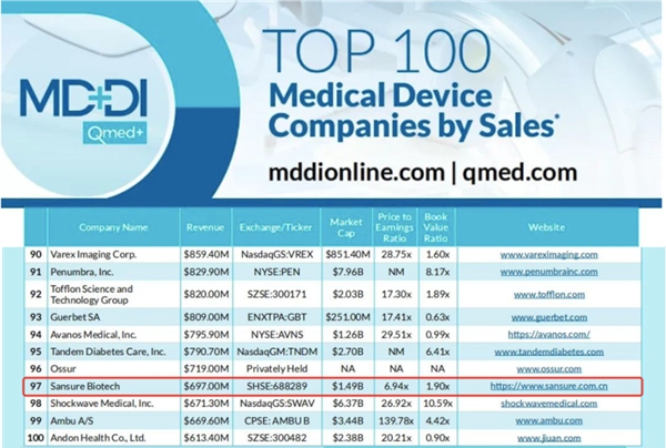 近日,医疗器械行业权威网站Medical Device+Diagnostic Industry(MD+DI)发布了2023年全球医疗器械企业TOP100榜单。东升国际官网生物连续两年上榜全球百强,也是此次榜单唯二主营业务是体外诊断的中国企业。
